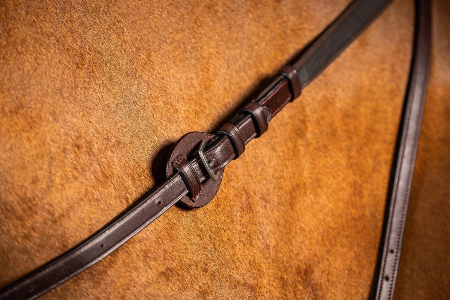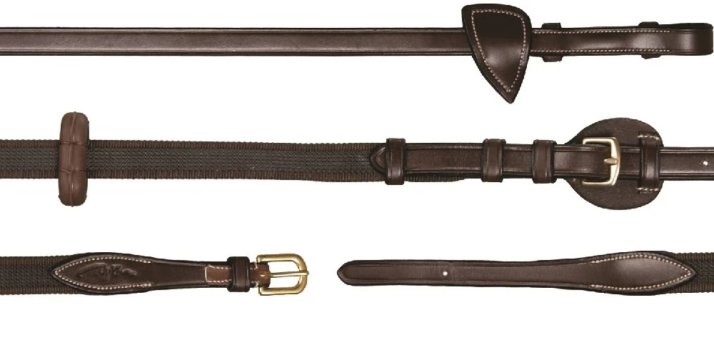 Verstelbare grip web teugels met 1 rubberen vastgestikte handstopper op elke teugel – 16 mm.