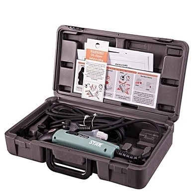 Door de korte body kunt u makkelijker de benen van het paard scheren. Deze scheermachine is luchtgekoeld, weegt slechts 760 g en heeft een hoogwaardige rubberen kabel van 5 m.