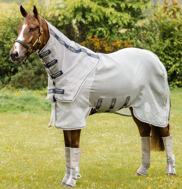 De Horseware Rambo Protector vliegendeken met afneembare hals biedt maximale bescherming tegen vliegen en insecten. De V-Front sluiting voorkomt drukking en wrijving op de schouder wat zorgt ervoor dat je paard comfortabel kan grazen.