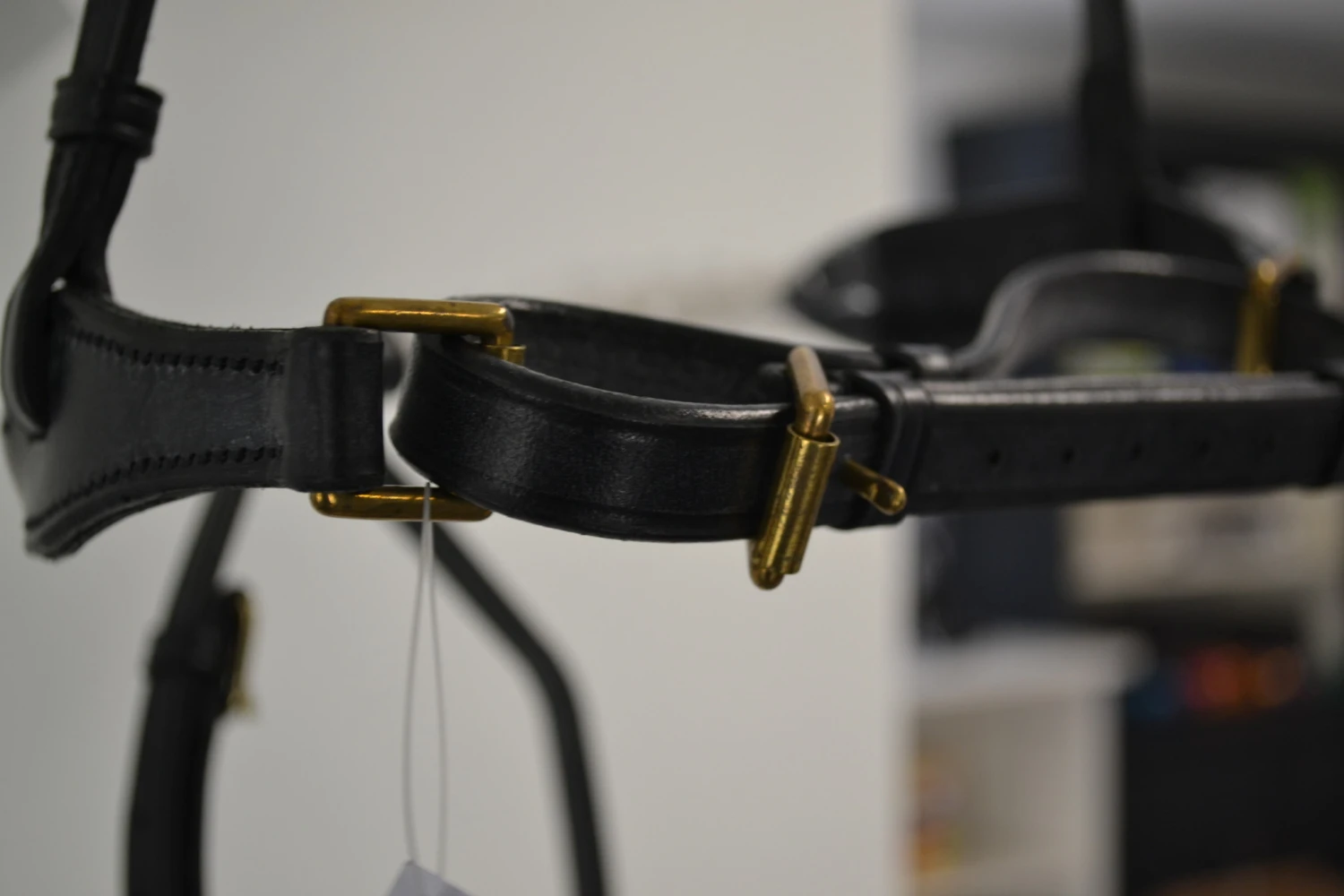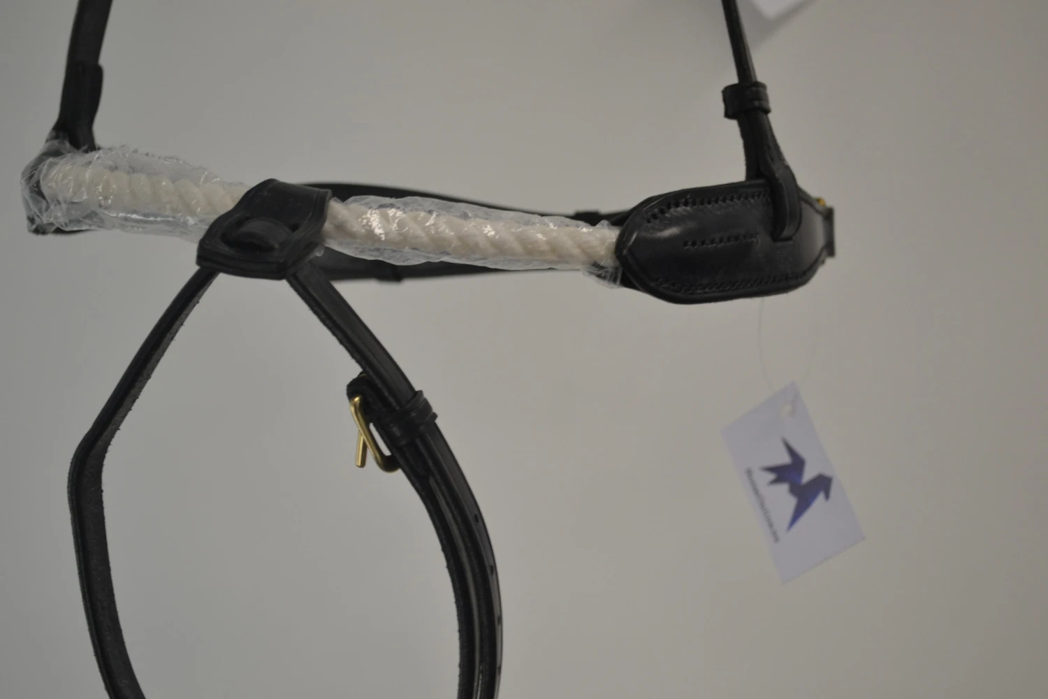 Stephens Aansnoer gecombineerde neusriem van leer en gewaxt touw.