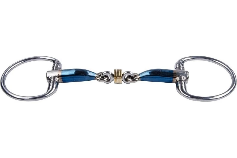 - Het midden stuk van dit bit is voorzien van koperen ringen die het paard aanmoedigen om met het bit te spelen waardoor de tongactiviteit wordt verhoogd.